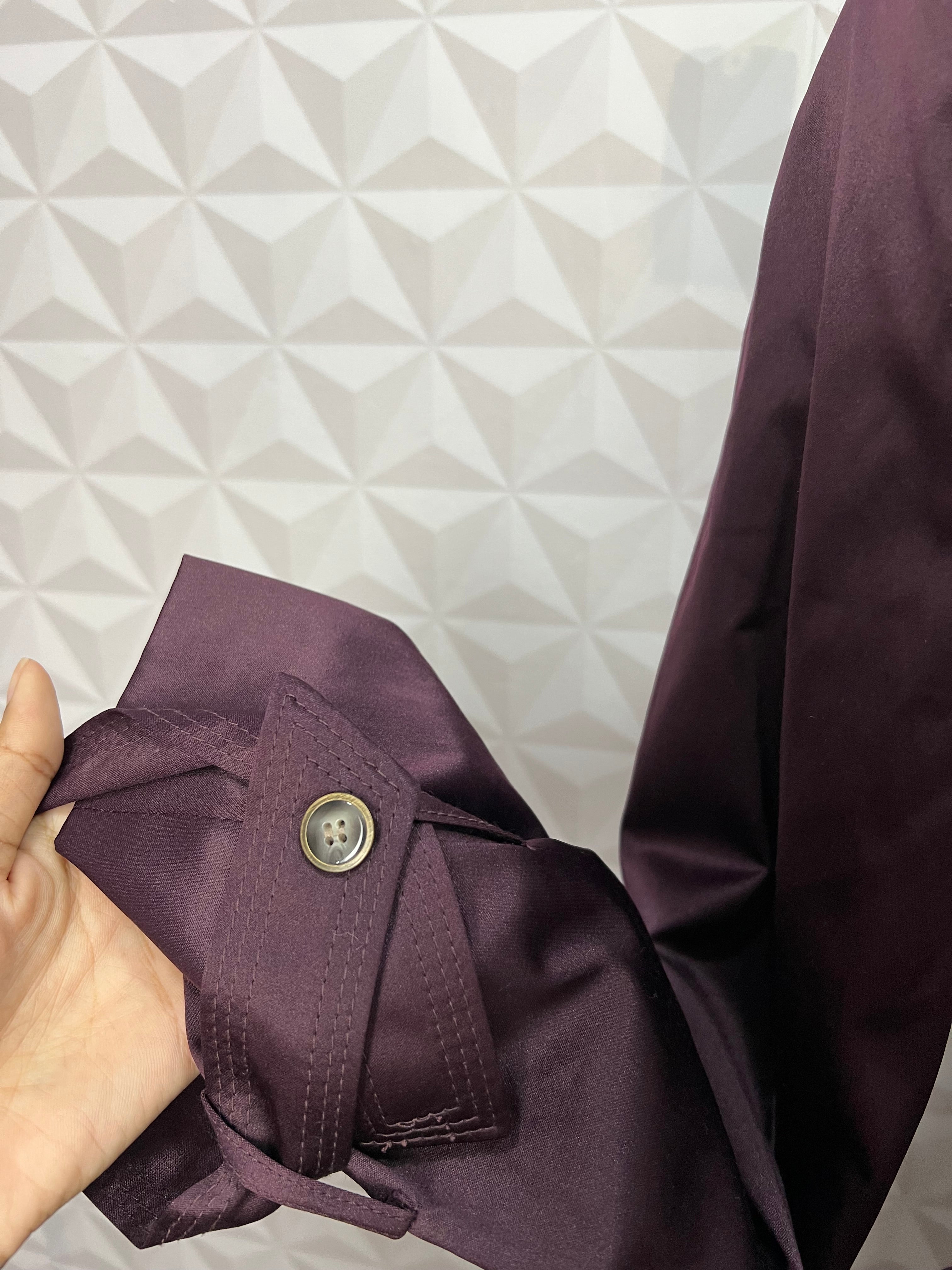 Sobretudo feminino roxo, tamanho P, perfeito para quem busca estilo e qualidade. Sem avarias e em excelente estado de reuso, é uma peça atemporal que traz sofisticação ao seu guarda-roupa. Com comprimento de 101 cm e manga de 59 cm, oferece conforto e proteção para diferentes ocasiões, combinando com diversos looks para um visual moderno e despojado.