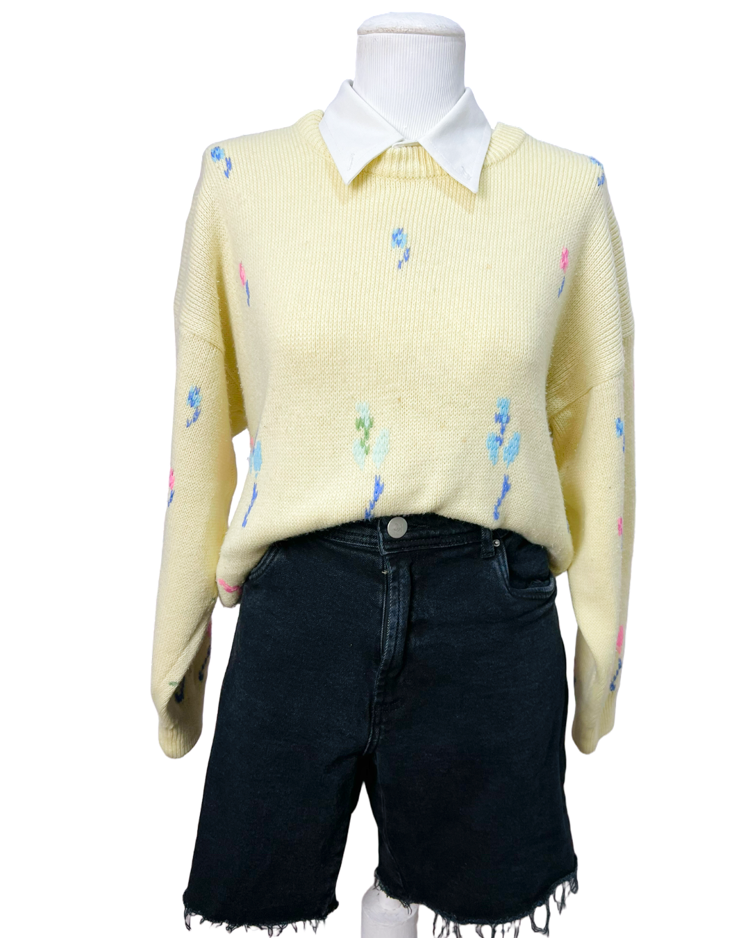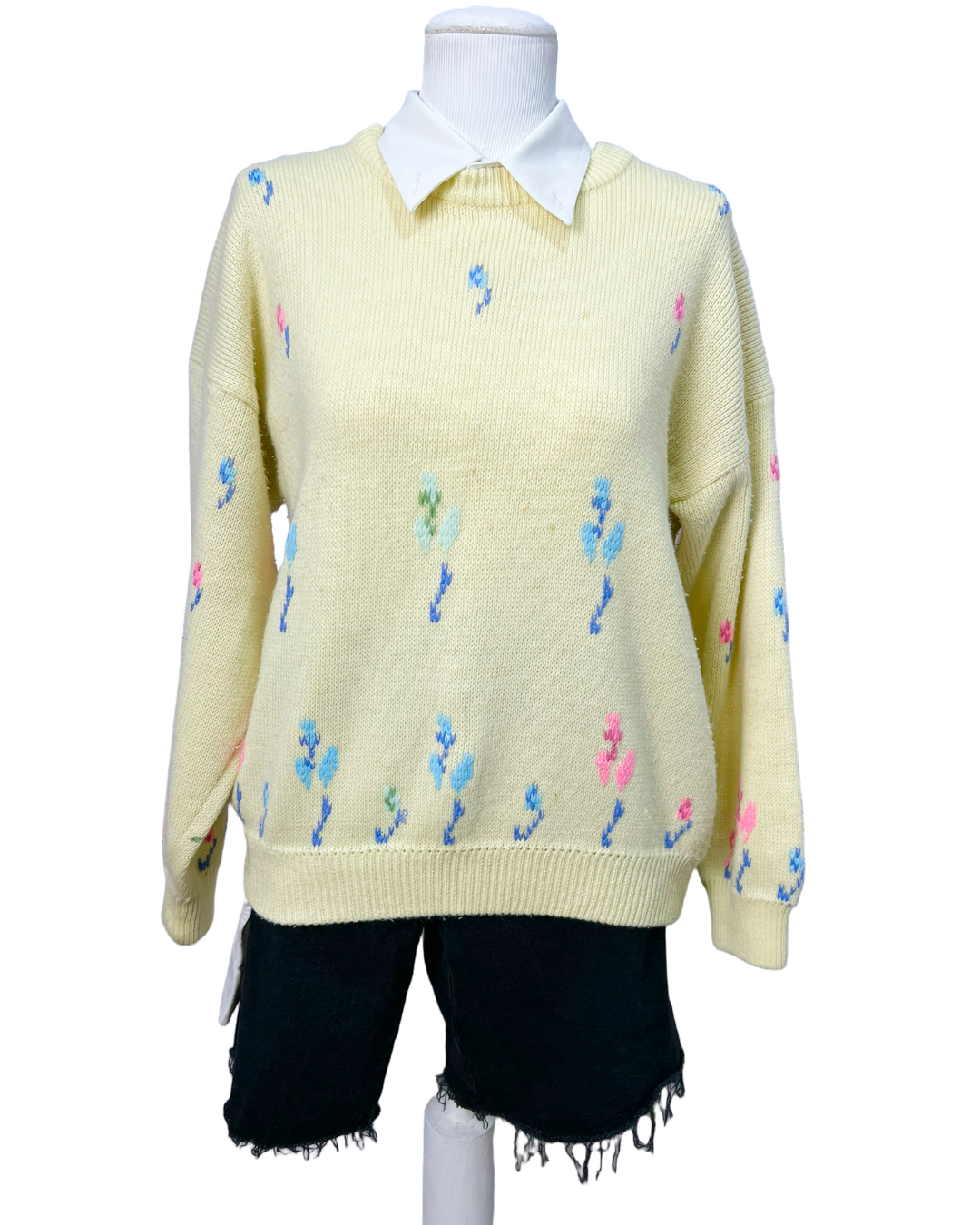 Este tricô vintage com estampa de flores tamanho G é uma peça feminina estilosa, atemporal e de qualidade. Sem avarias e em perfeito estado de reuso, tem comprimento de 60cm e mangas de 59cm, ideal para oferecer conforto e um toque retrô moderno ao seu visual. Perfeito para compor looks descontraídos com personalidade jovem.